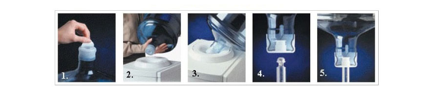 5. The plastic prong in the center of water cooler will push the re-sealable valve ( small inner plug ), allow drinking water to flow through.